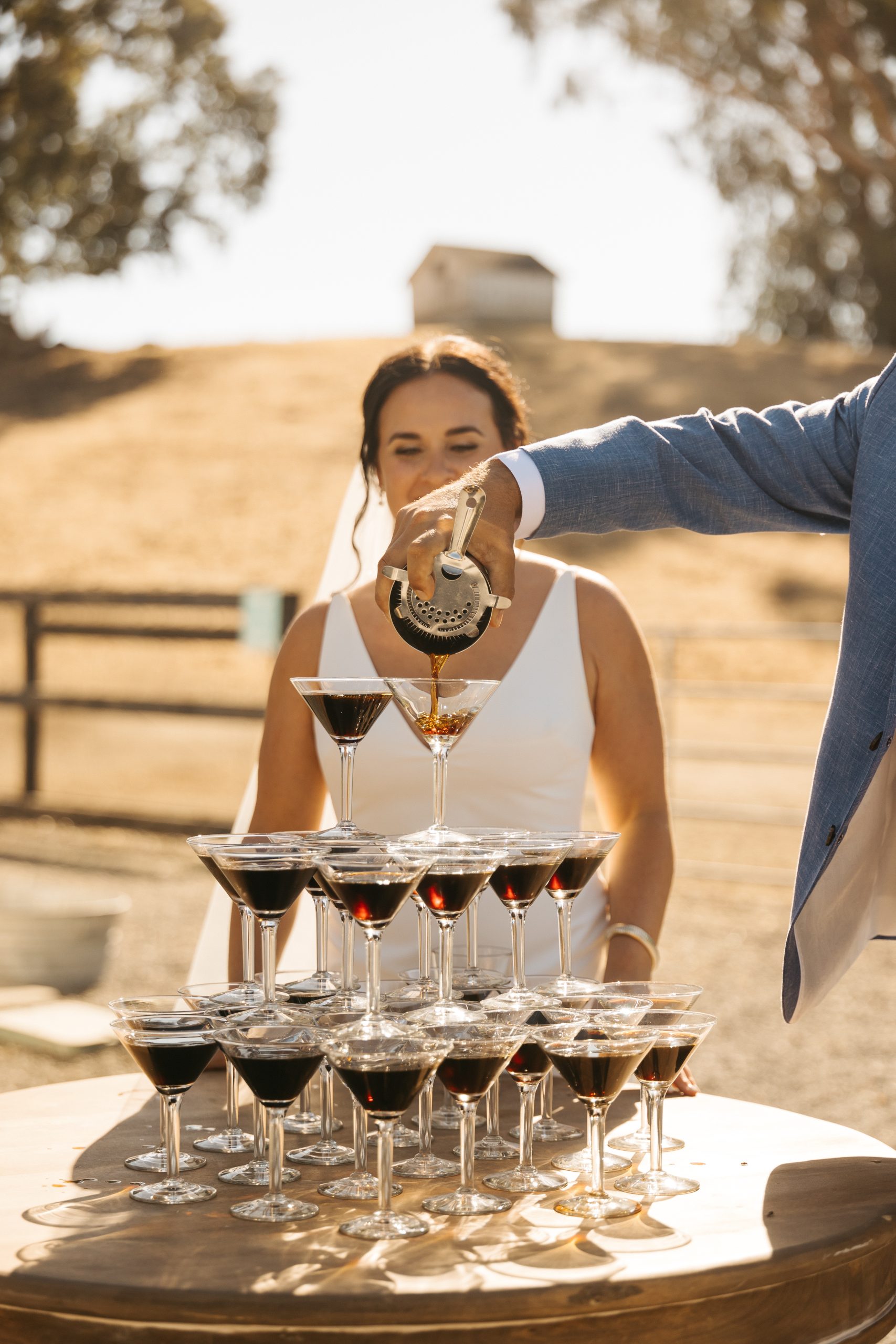 To kick off cocktail hour, Gianna and Nikko poured an espresso martini tower — a moment that immediately set the tone for a celebration full of personality.