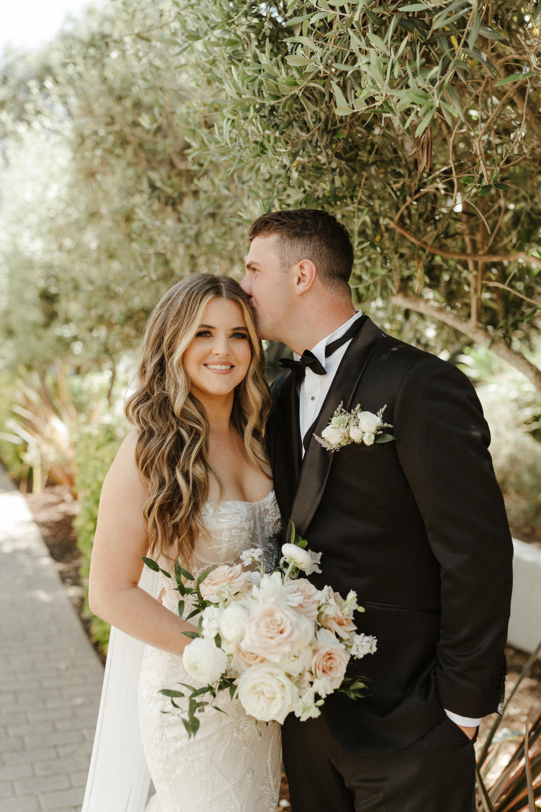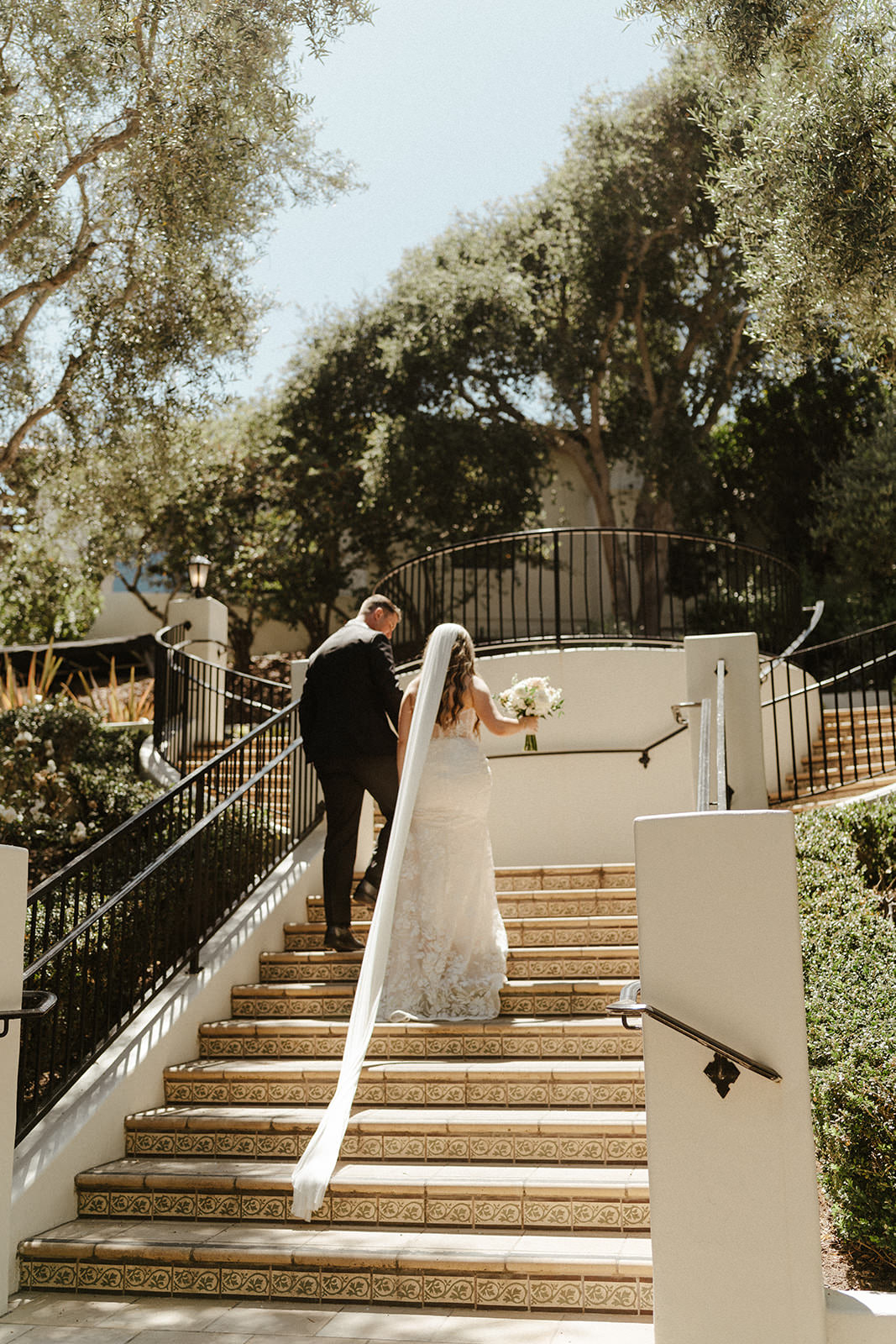 THE VENUE: Perched along the coast, The Ritz-Carlton Bacara offered the ultimate Santa Barbara backdrop. With its white arches, palm-lined pathways, and uninterrupted ocean views, the venue felt timeless and distinctly Californian. The setting itself became a central design element, allowing the couple to keep decor minimal and let the scenery shine.