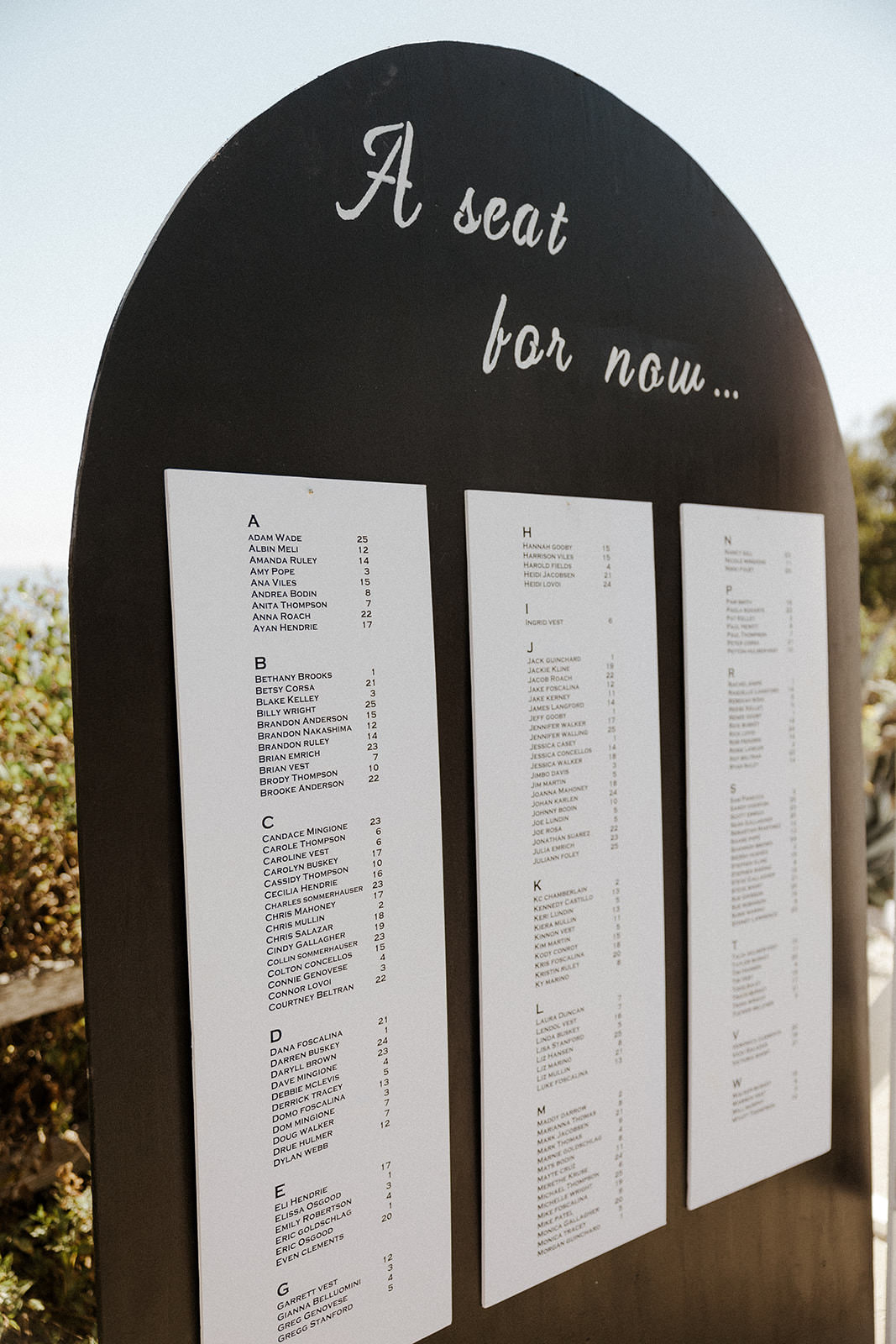 SPECIAL TOUCHES: Many of the most memorable details came directly from family. The bride and her family created a seating chart wall featuring individual jars of homemade cold brew, giving guests a sweet (and caffeinated) welcome. As a personalized favor, each guest received a custom-etched coupe glass, engraved on-site with names or sayings — a keepsake both thoughtful and functional.
